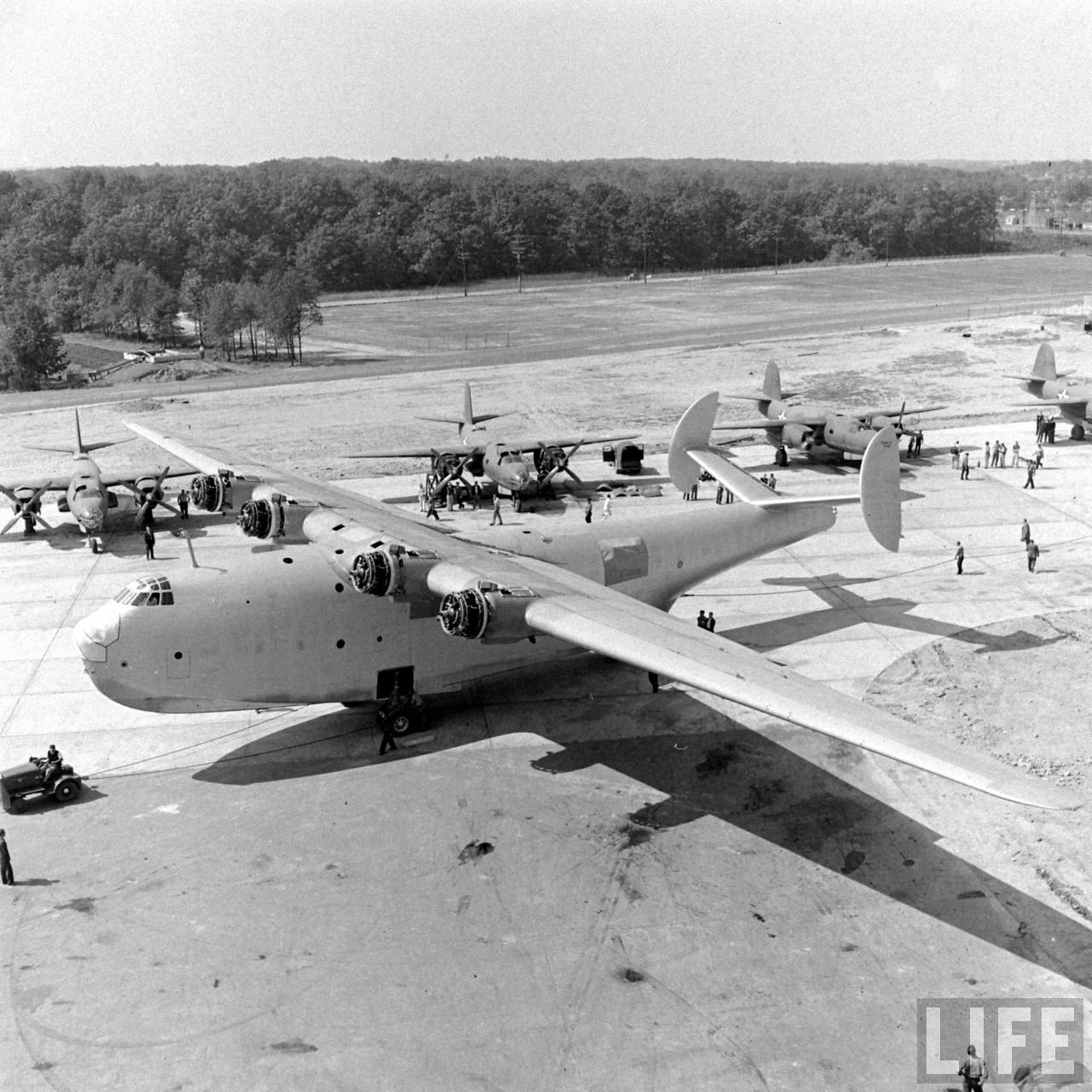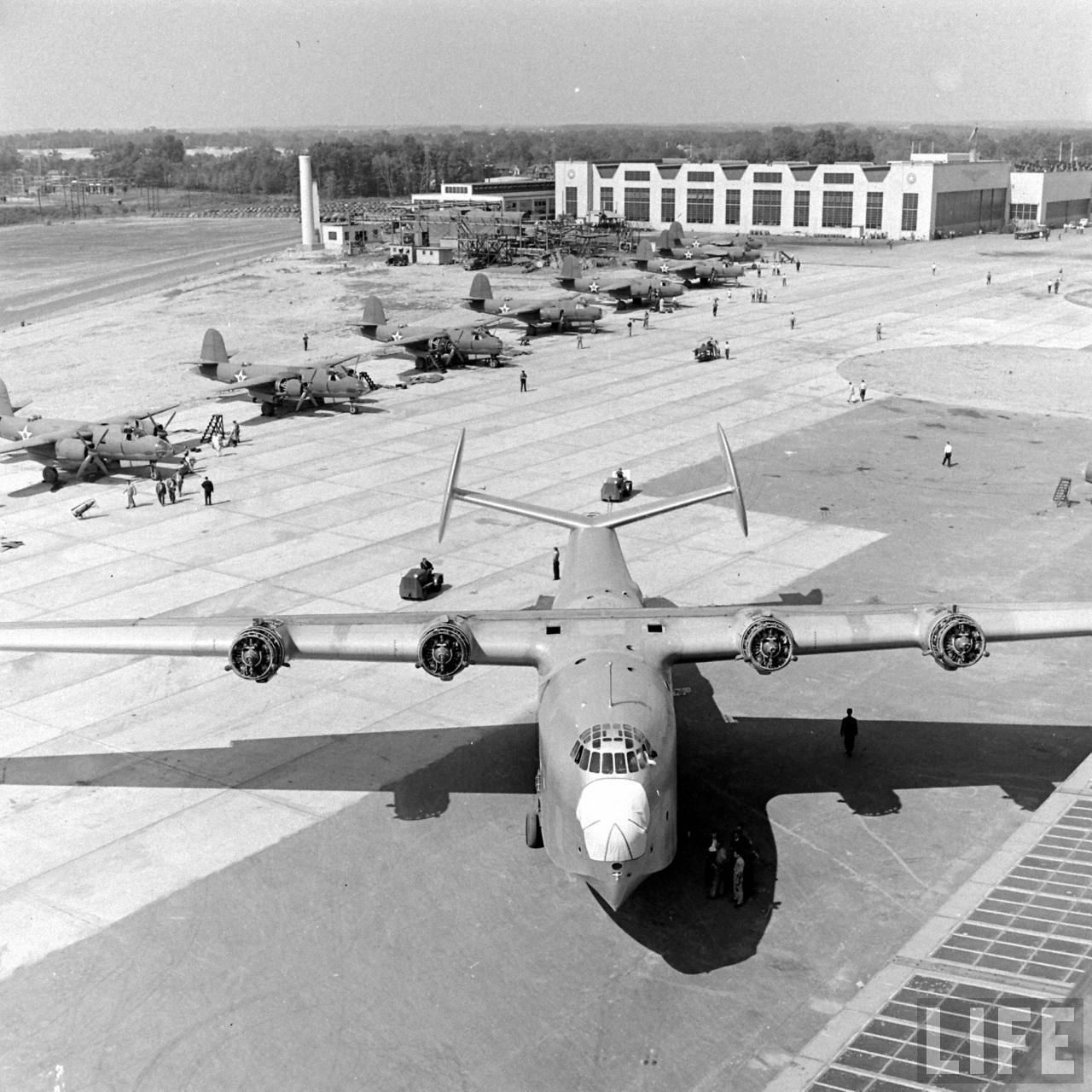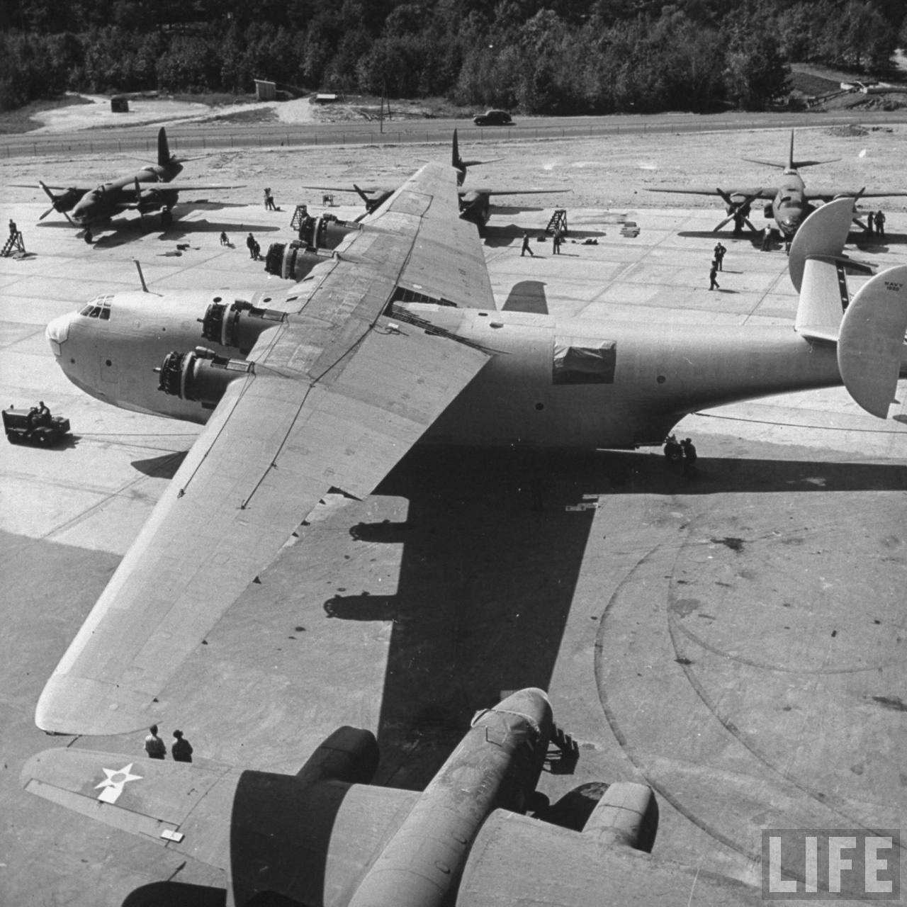 magazine images taken during final completion and after the roll-out of the prototype of the huge Martin Mars. Just compare the overall size of it to the people and other airframes around.