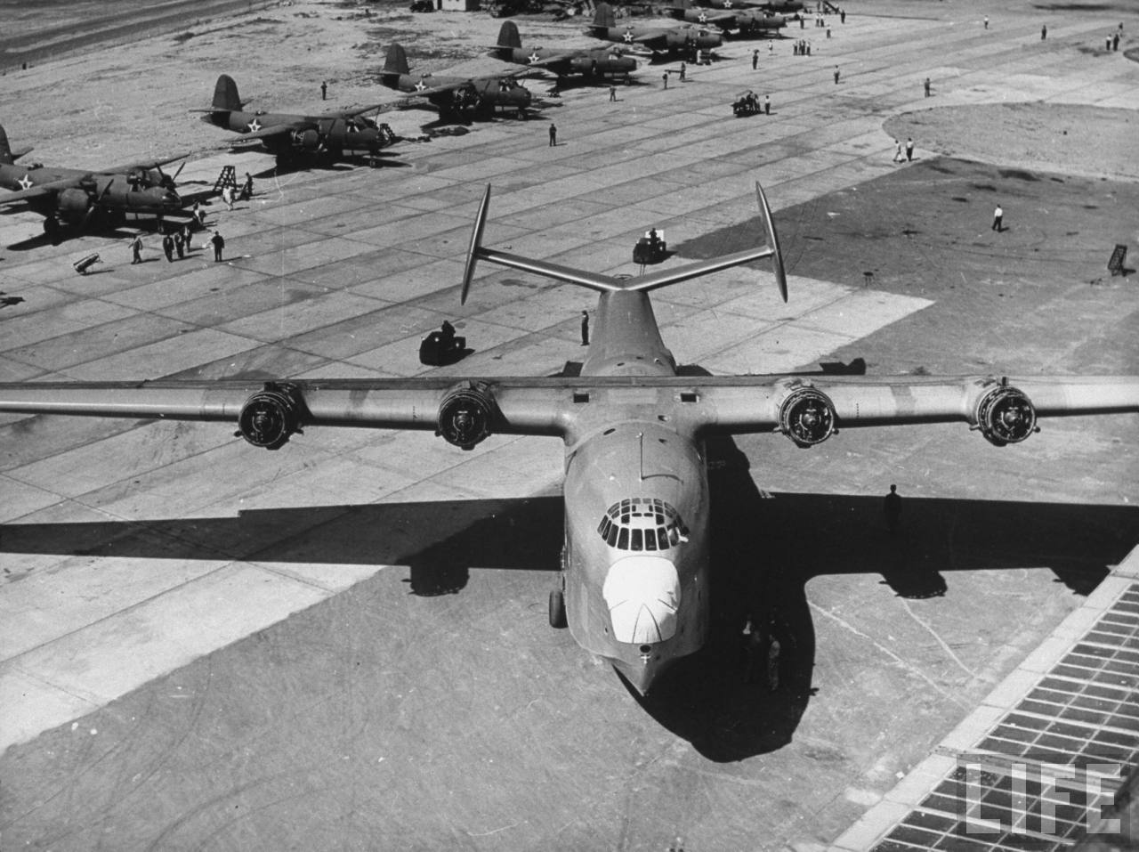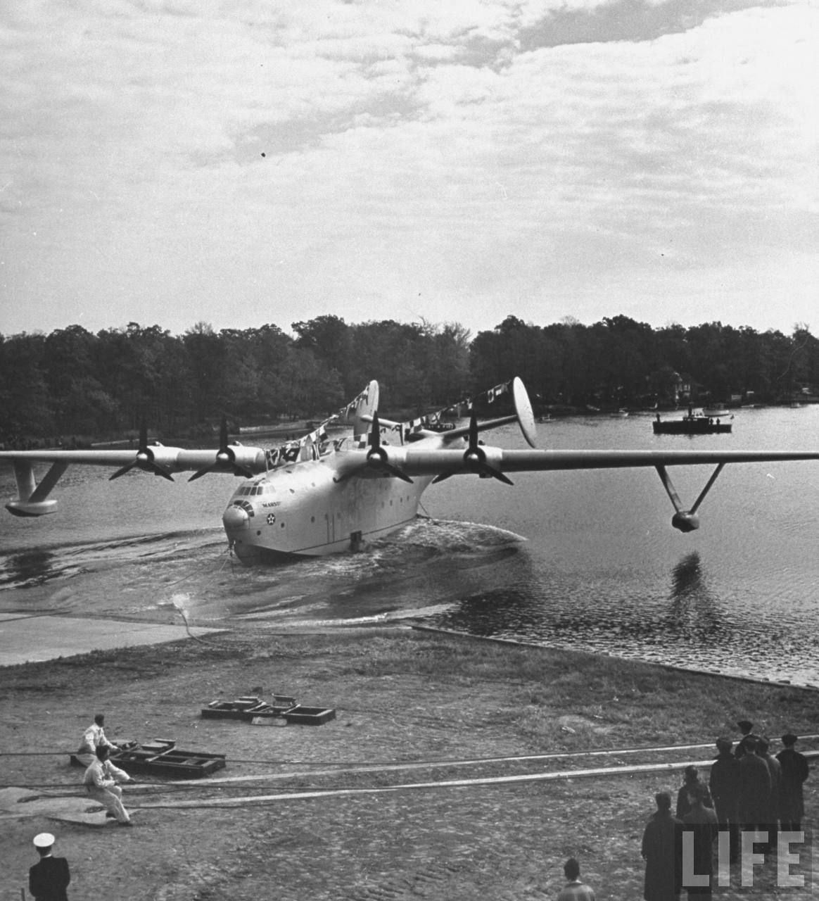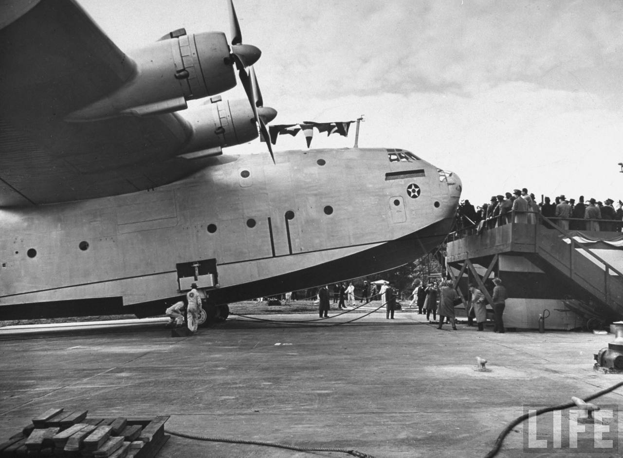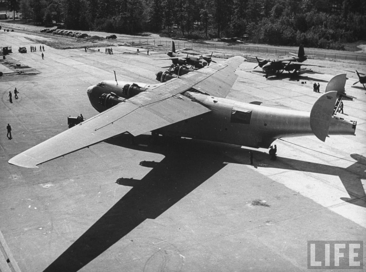 magazine images taken during final completion and after the roll-out of the prototype of the huge Martin Mars. Just compare the overall size of it to the people and other airframes around.